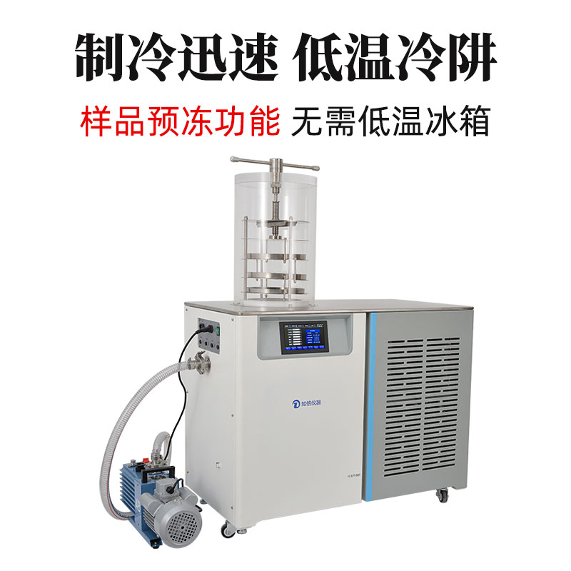 冷凍干燥機(jī)是將含水物品預(yù)先凍結(jié),然后使其水分在真空狀態(tài)下升華而獲得干燥物品的一種技術(shù)方法。經(jīng)冷凍干燥后物品理化性質(zhì)、生物特性基本不變,易于長(zhǎng)期保存,復(fù)水后物品能迅速恢復(fù)到凍干前的形態(tài),并且能保持其原有的生化特性。因此,冷凍干燥機(jī)在化工、食品、醫(yī)藥、生物等制品的制備和檢測(cè)領(lǐng)域得到廣泛應(yīng)用。